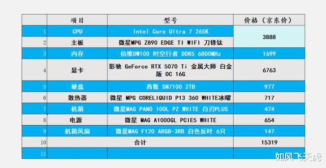 这2套配置电脑,选择了英特尔酷睿Ultra 7 265K这款强大的CPU,以及微星迫击炮和刀锋钛主板,兼具性能和高颜值,同时具有不错的价格优势。上面的2套配置,具有强大的生产力和游戏高性能,可以说在未来的几年内都不会落伍。