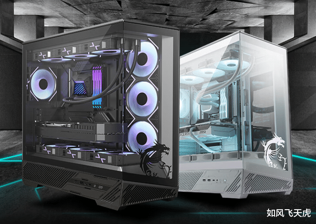 机箱选择了微星MAG PANO 131L PZ 黑龙,这款机箱采用醒目的对角线线条和锐利的切割元素,具有明显的电竞风格。它具有良好的通风设计,对风道进行了优化,增加了正面和侧面通风口数量,提升散热效果。它最多支持10个风扇,支持顶部或者侧面的360mm水冷,使用灵活。同时具有免工具设计,安装简单方便。
